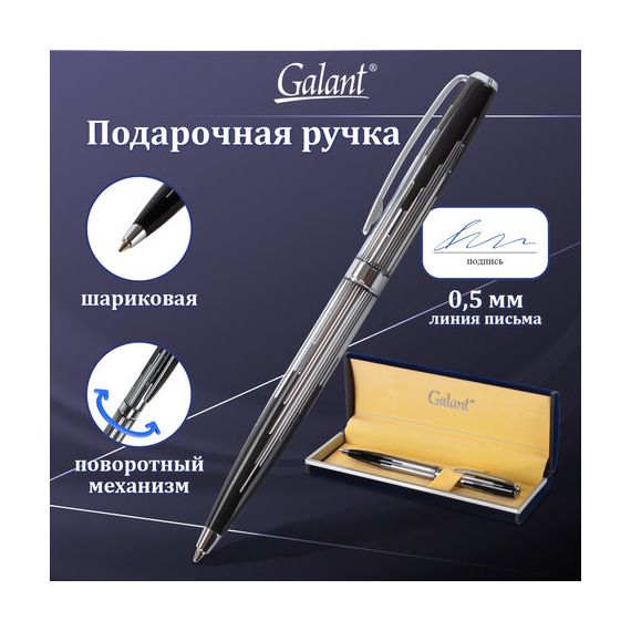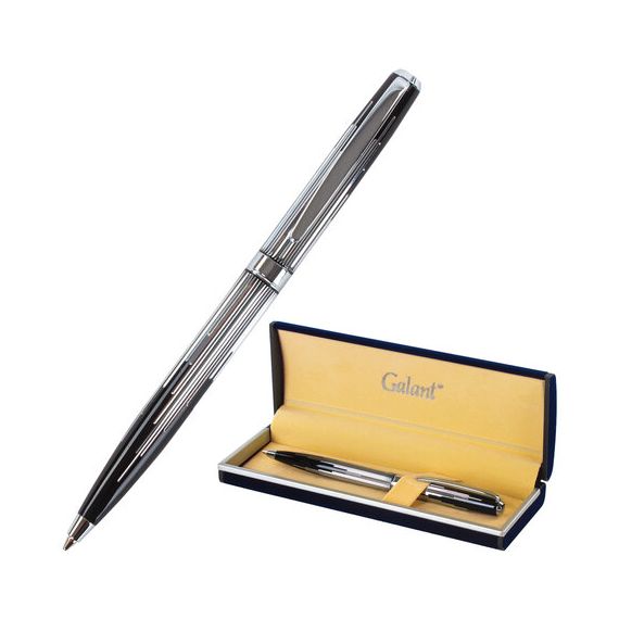 Ручка подарочная шариковая GALANT "Offenbach", корпус серебристый с черным, хромированные детали, пишущий узел 0,7 мм, синяя, 141014