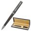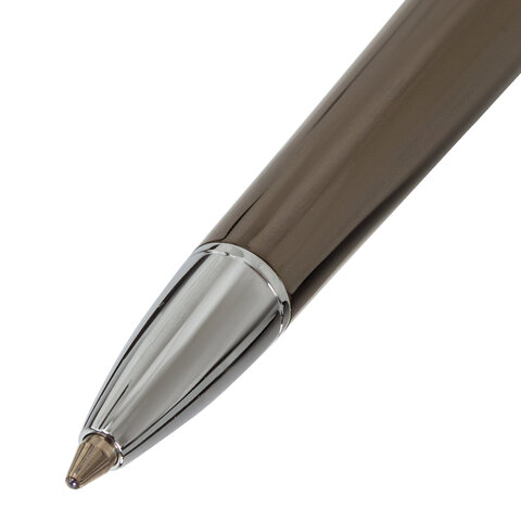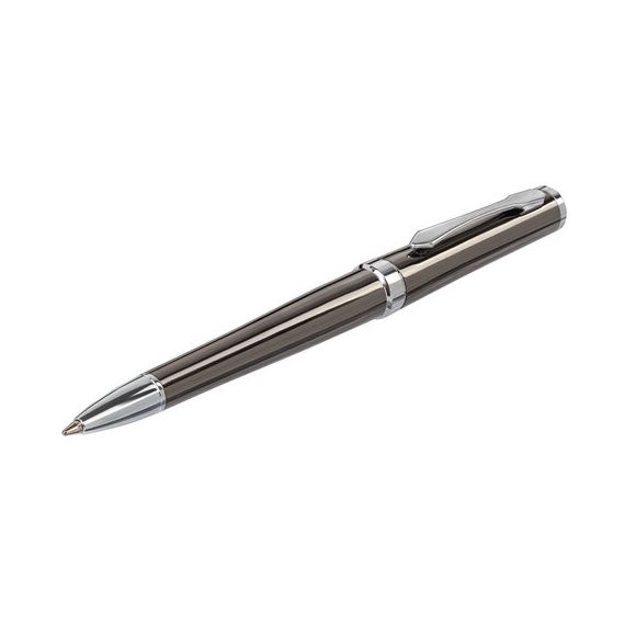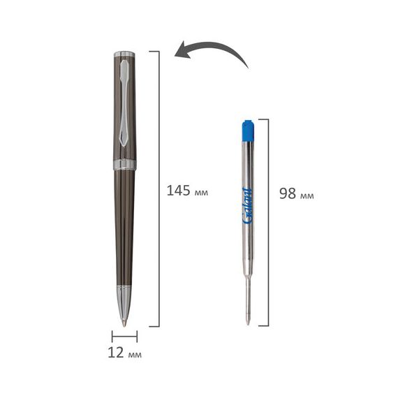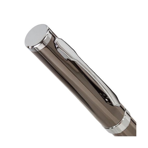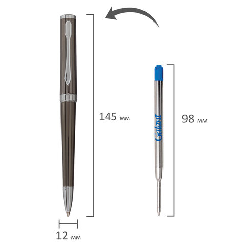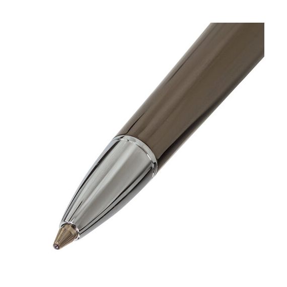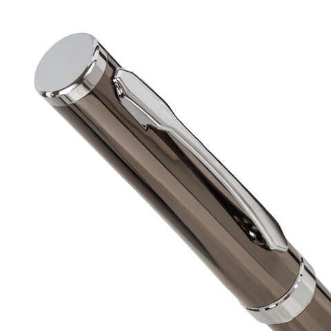 Классическая модель ручки с корпусом из латуни цвета оружейного металла с серебристыми деталями. Синий цвет чернил; длина стержня составляет 98 мм, а диаметр пишущего узла - 0,7 мм. Поставляется в индивидуальном подарочном футляре. Подходит для гравировки.