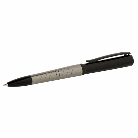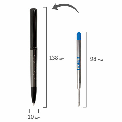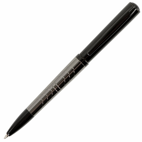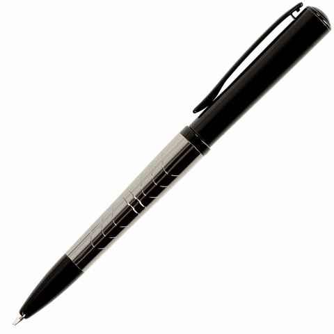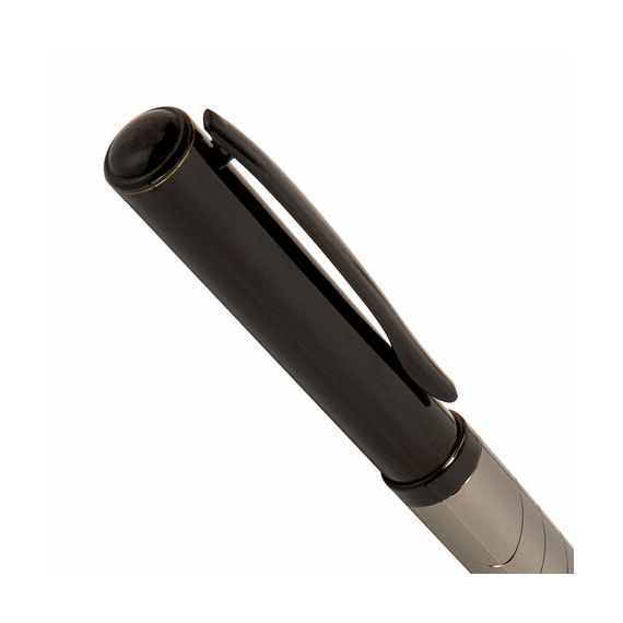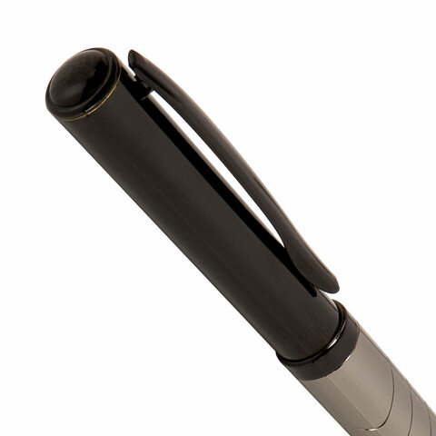 Утонченная модель ручки с корпусом из латуни цвета оружейного металла с черными деталями и декоративным узором. Синий цвет чернил; длина стержня составляет 98 мм, а диаметр пишущего узла - 0,7 мм. Поставляется в индивидуальном подарочном футляре. Подходит для гравировки.
