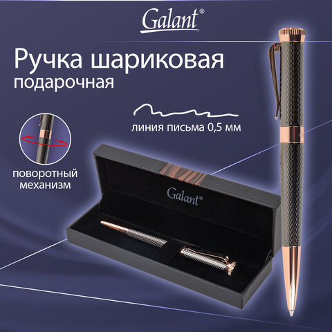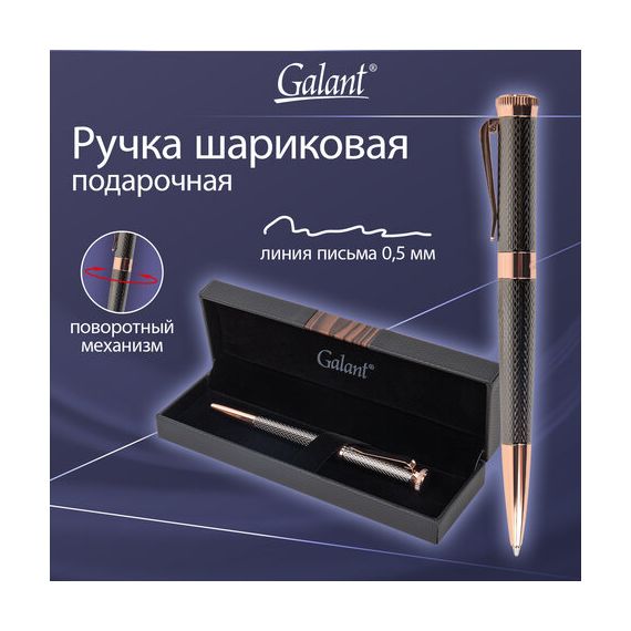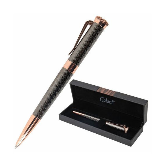 Ручка подарочная шариковая GALANT "Taut", корпус оружейный металл, детали розовое золото, узел 0,7 мм, линия письма 0,5 мм, синяя, 144170