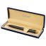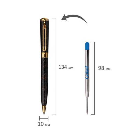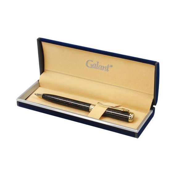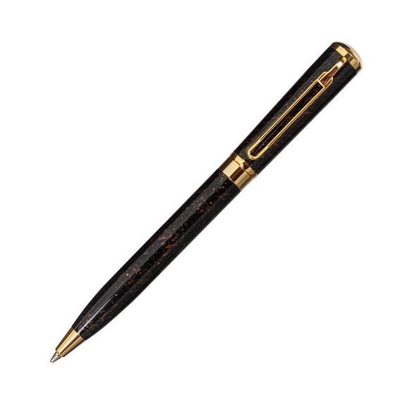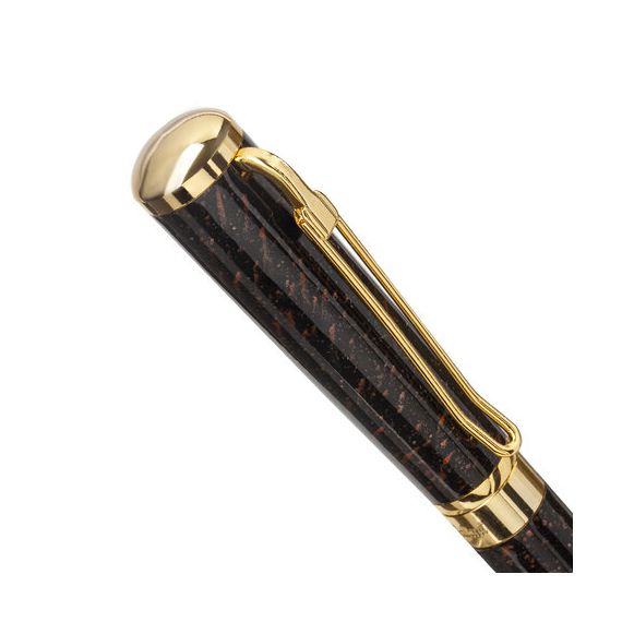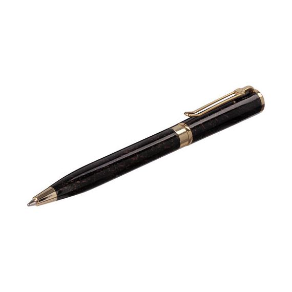 Утонченная модель ручки с корпусом из латуни темно-коричневого цвета и золотыми деталями прекрасно лежит в руке. Синий цвет чернил; длина стержня составляет 98 мм, а диаметр пишущего узла - 0,7 мм. Поставляется в индивидуальном подарочном футляре. Подходит для гравировки.