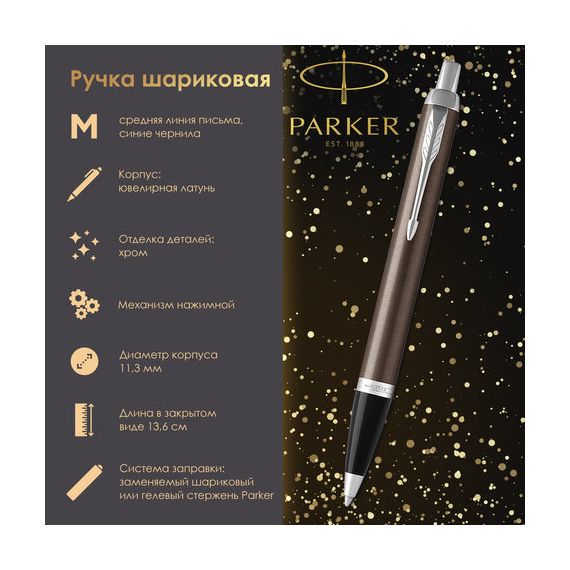 Ручка шариковая PARKER "IM Core Dark Espresso CT", корпус кофейный лак, хромированные детали, синяя, 1931671