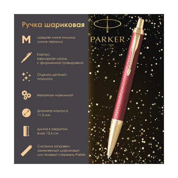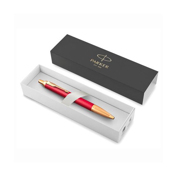 Ручка шариковая PARKER "IM Premium Red GT", корпус красный лак, позолоченные детали, синяя, 2143644