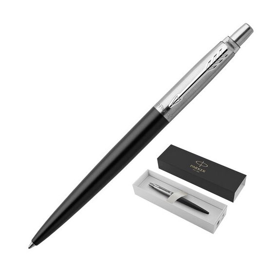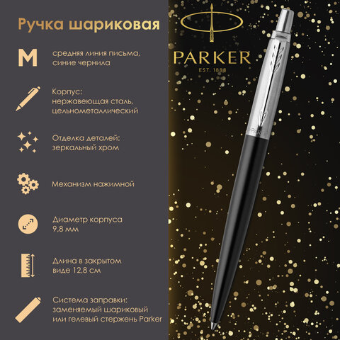 Ручка шариковая PARKER "Jotter Core Bond Street Black CT", корпус черный, детали хром, синяя, 1953184