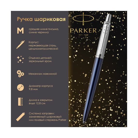 Ручка шариковая PARKER "Jotter Core Royal Blue CT", корпус синий, детали хром, синяя, 1953186