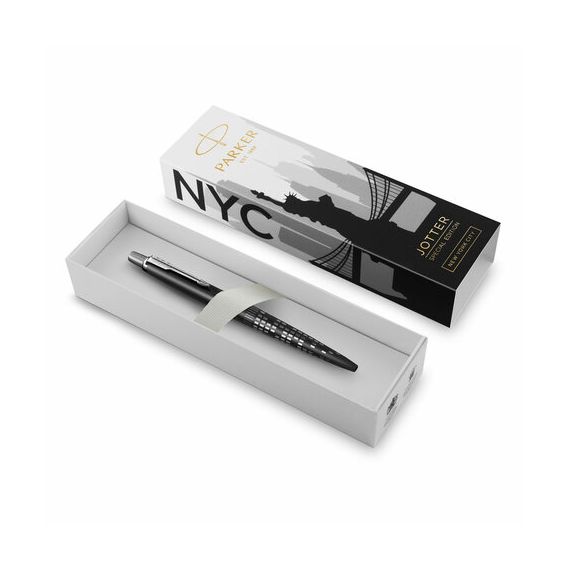 Ручка шариковая PARKER "Jotter New York Black CT", корпус черный лак, детали из нержавеющей стали, синяя, 2187554