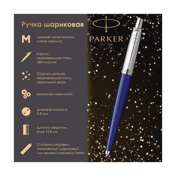 Ручка шариковая PARKER "Jotter Orig Blue", корпус синий, детали нержавеющая сталь, синяя, RG0033170