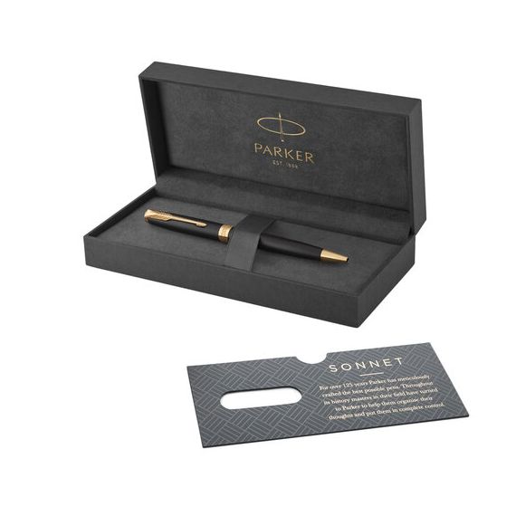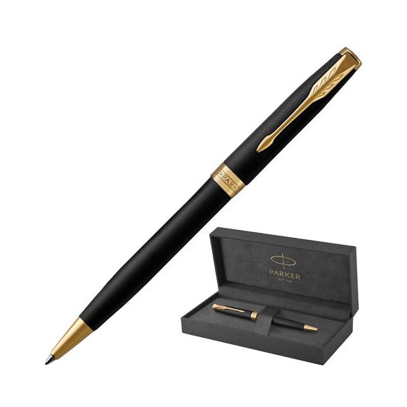 Ручка шариковая PARKER "Sonnet Core Matt Black GT", черный матовый лак, позолота, черная, 1931519
