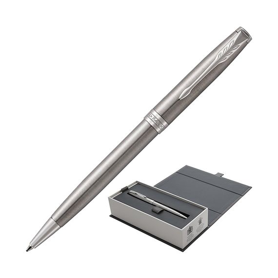 Ручка шариковая PARKER "Sonnet Core Stainless Steel CT", корпус серебристый, палладиевые детали, черная, 1931512