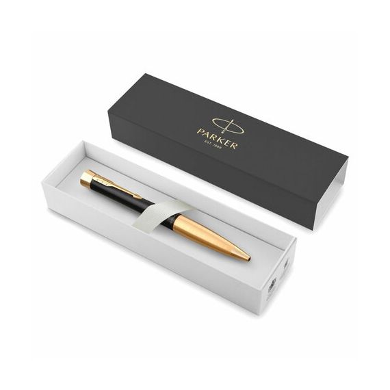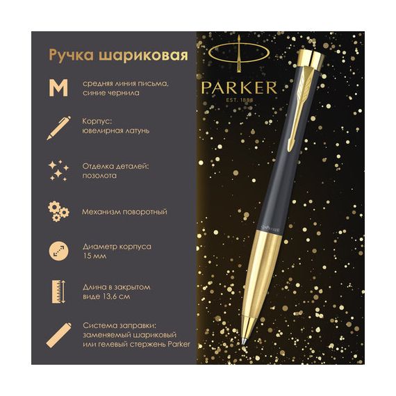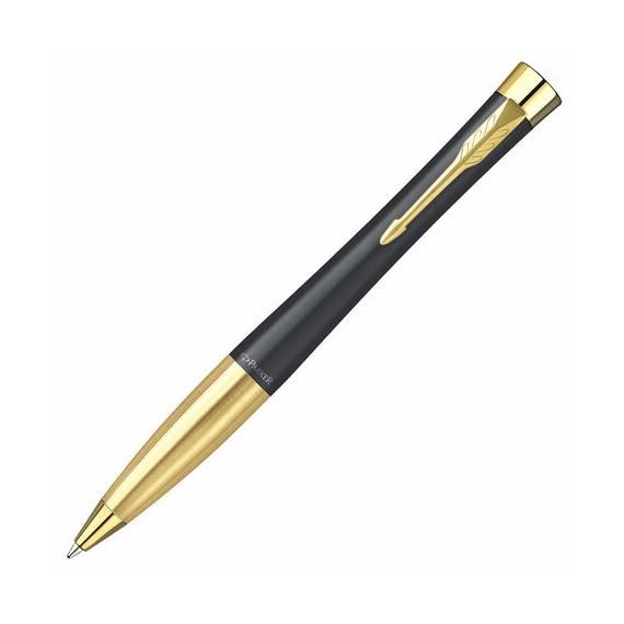 Ручка шариковая PARKER "Urban Muted Black GT", корпус черный, позолоченные детали, синяя, 2143640