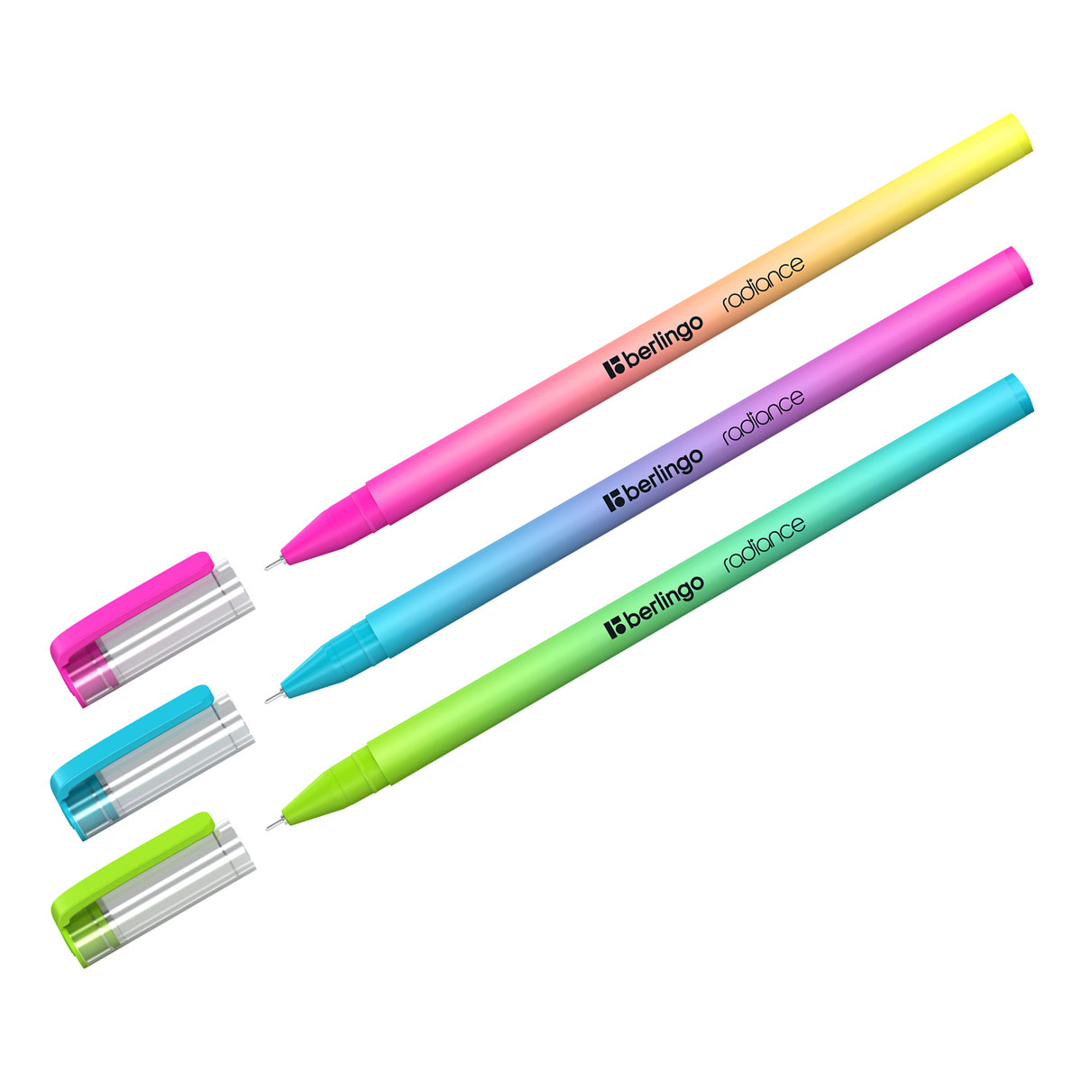Шариковая ручка из кросс-серии Berlingo Radiance несет в себе тренд сезона – неоновый градиент. Комбинация этого эффекта с покрытием soft-touch делают эту ручку модным канцелярским аксессуаром. Ручка представлена с пластиковым прозрачным клипом на колпачке. Диаметр пишущего узла составляет 0,7 мм, благодаря чему ручка прекрасно подходит для любого стиля письма. Уникальная технология Smart Ink обеспечивает лёгкое и приятное письмо за счёт использования чернил пониженной вязкости, специальной конструкции пишущего узла и инновационных материалов шарика.
