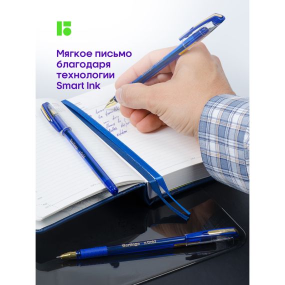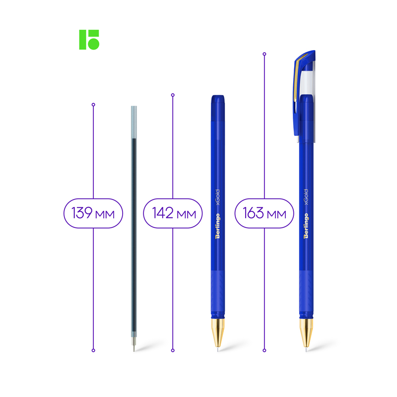 Ручка шариковая Berlingo xGold – это флагманская модель ассортимента Berlingo. 12 штук в упаковке. Цвет чернил: синий. Толщина линии письма: 0,5 мм. Длина письма: 850 м. Не раз становилась официальной ручкой «Тотального диктанта» – ежегодной образовательной акции популяризации грамотности. Кроме того, xGold является обладателем премии «Выбор канцелярского рынка 2018». Ручка оснащена вентилируемым колпачком, который обеспечивает безопасность при использовании детьми. Удобный пластиковый клип позволяет закрепить ручку, например, на ежедневнике или тетради. Мягкий резиновый грип препятствует скольжению пальцев и обеспечивает комфортное письмо. Диаметр пишущего узла составляет 0,7 мм, благодаря чему ручка прекрасно подходит для любого стиля письма.