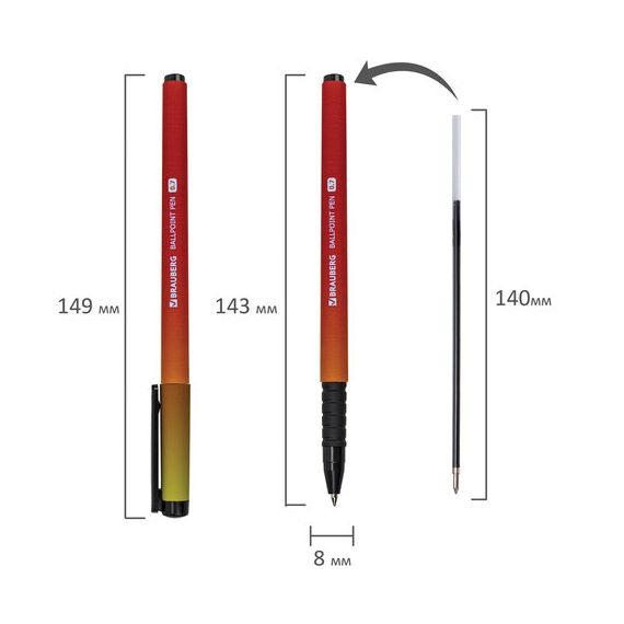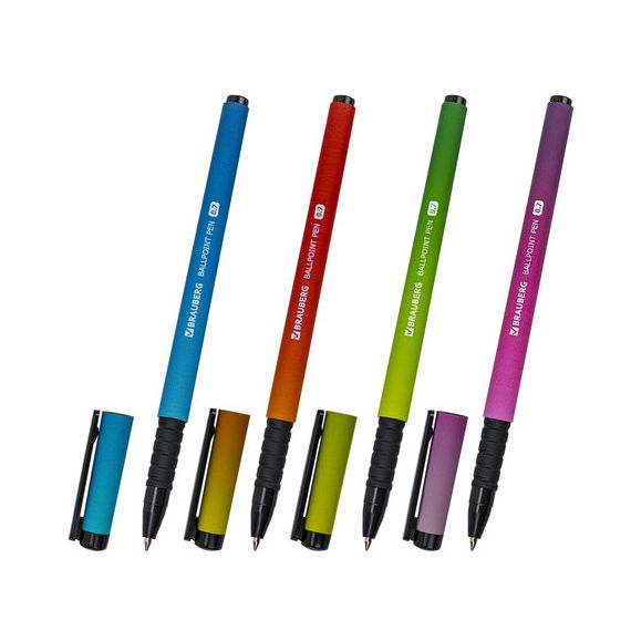 Шариковая ручка BRAUBERG SOFT TOUCH GRIP "GRADE NEON" с мягким покрытием корпуса и оригинальным дизайном ярких оттенков.