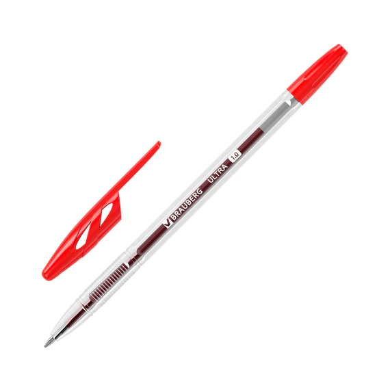 Ручка шариковая BRAUBERG "ULTRA", КРАСНАЯ, узел 1 мм, чернила ГЕРМАНИЯ, наконечник ШВЕЙЦАРИЯ