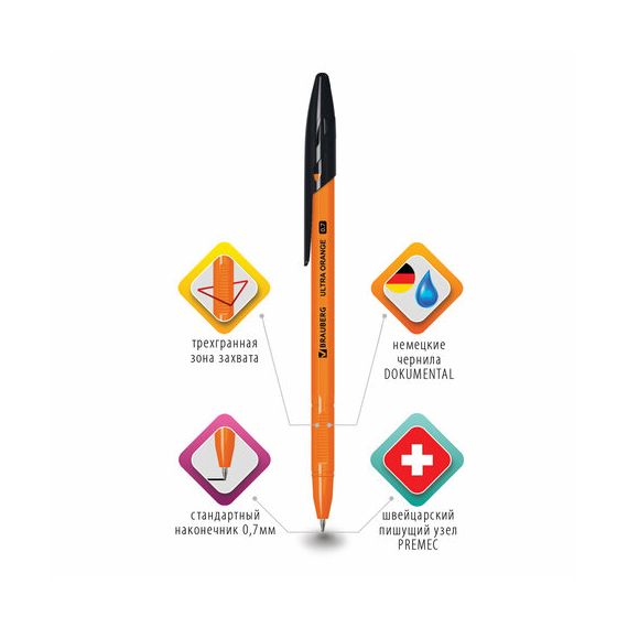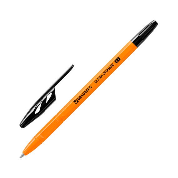 Ручка шариковая BRAUBERG "ULTRA ORANGE", ЧЕРНАЯ, узел 0,7 мм, чернила ГЕРМАНИЯ, наконечник ШВЕЙЦАРИЯ