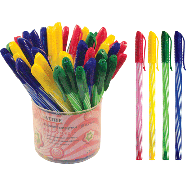Ручка шариковая одноразовая "deVENTE. Candy" d=0,7 мм, цветной полосатый корпус, игольч.пиш.узел