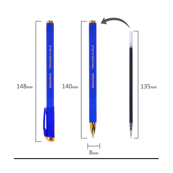 Шариковая ручка BRAUBERG "Techno-X GLD" – функциональный аксессуар для ежедневного комфортного письма.