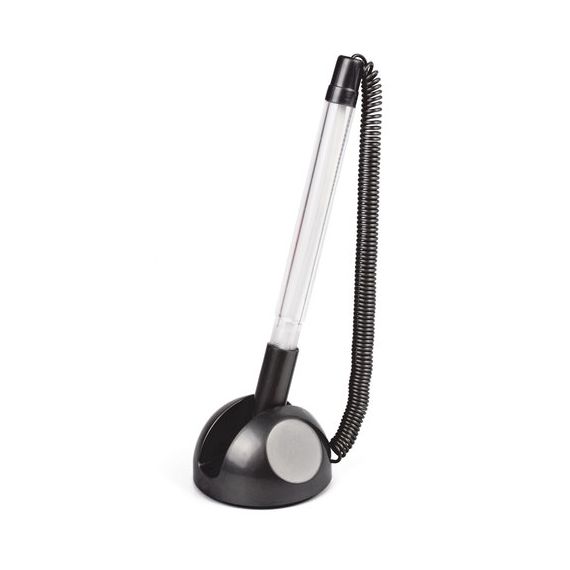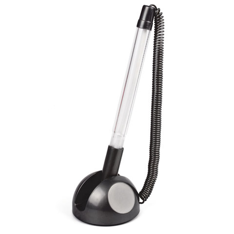 Ручка шариковая настольная BRAUBERG "Стенд-Пен", СИНЯЯ, пружинка, корпус черный, линия письма 0,5 мм