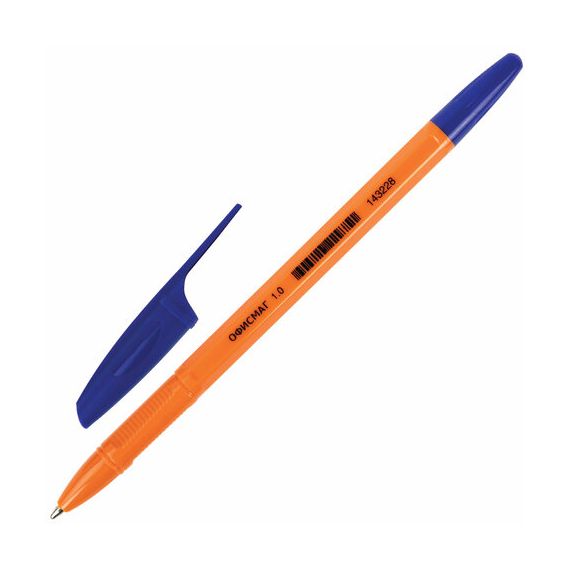 Ручка шариковая ОФИСМАГ "X-333 Orange", СИНЯЯ, корпус оранжевый, узел 1 мм, линия письма 0,5 мм*
