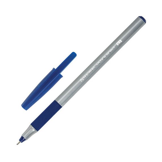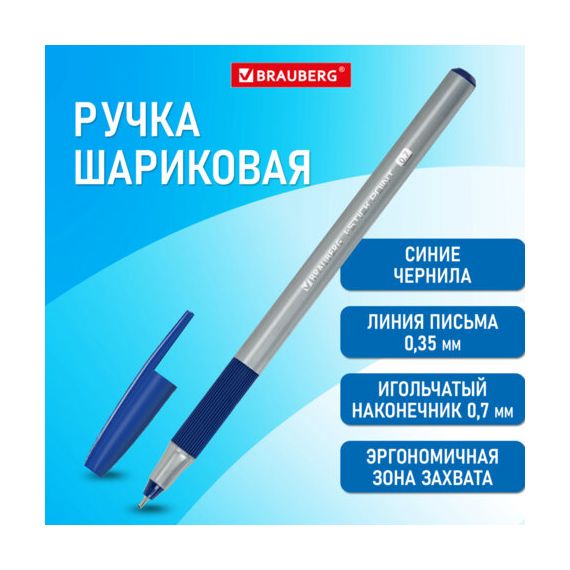 Ручка шариковая с грипом BRAUBERG "i-STICK POINT", СИНЯЯ, корпус серый, игольчатый узел 0,7 мм, лини