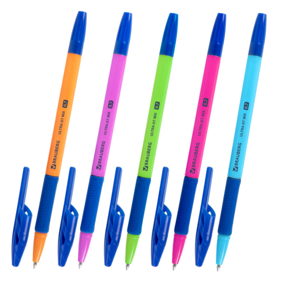Ручка шариковая с грипом BRAUBERG "ULTRA GT MIX", СИНЯЯ, корпус ассорти, линия 0,35 мм