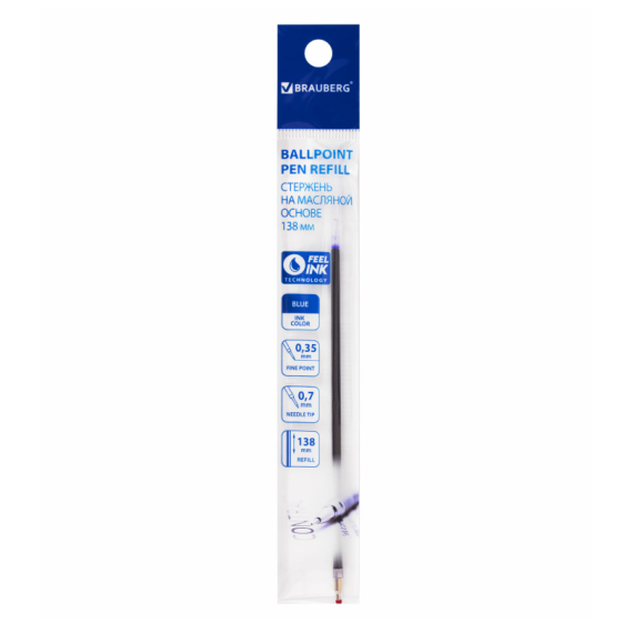 Стержень шариковый масляный BRAUBERG 138 мм, СИНИЙ, игольчатый узел 0,7 мм, линия письма 0,35 мм