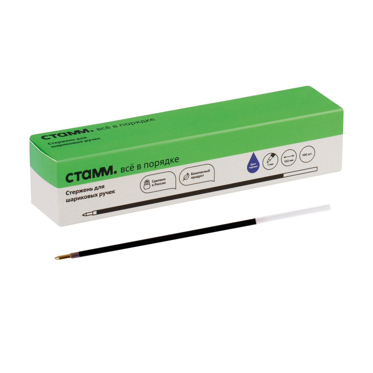 Шариковый стержень «СТАММ» синего цвета предназначен для замены исписанного стержня шариковой ручки. Диаметр пишущего узла составляет 1 мм, толщина линии – 0,7 мм. Длина линии письма может достигать 1500 метров. Длина стержня – 152 мм. Износостойкий наконечник и чернила на масляной основе обеспечивают мягкое, ровное и комфортное письмо.