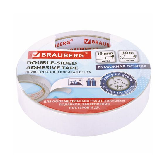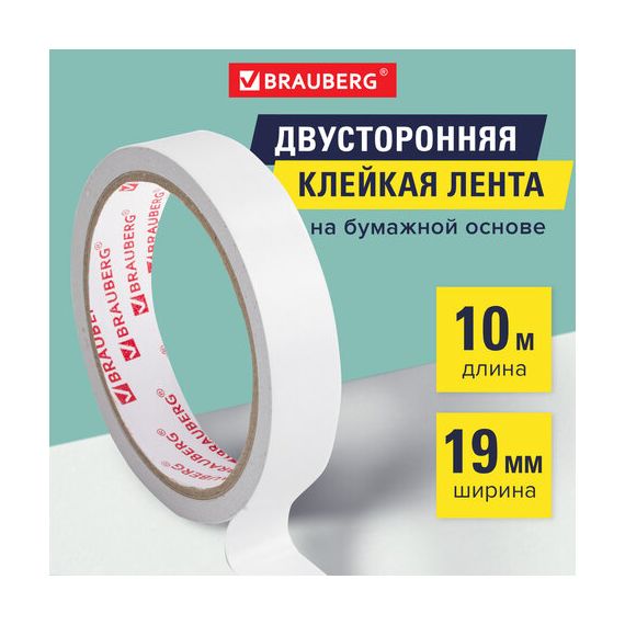 Клейкая двухсторонняя лента 19 мм х 10 м, БУМАЖНАЯ ОСНОВА, BRAUBERG