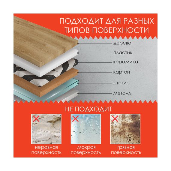 В отличие от обычного клея, ленты не вызывают деформацию бумаги и картона, а ложатся ровно, заполняя все неровности, увеличивая площадь соприкосновения и обеспечивая при этом отличное склеивание. При помощи клейких лент удобно скреплять между собой листы картона или бумаги, пластик, дерево, стекло, керамику.