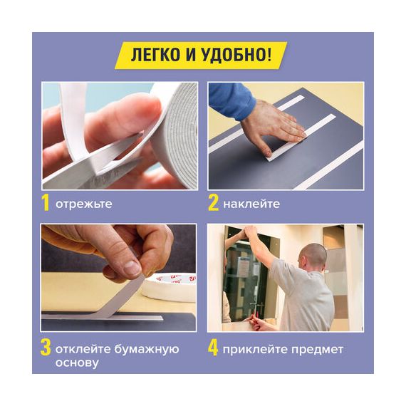 Двухсторонняя клейкая лента BRAUBERG на основе ЭВА применяется во время мотажных работ внутри помещений, при строительных, монтажных и автомобильных работах.