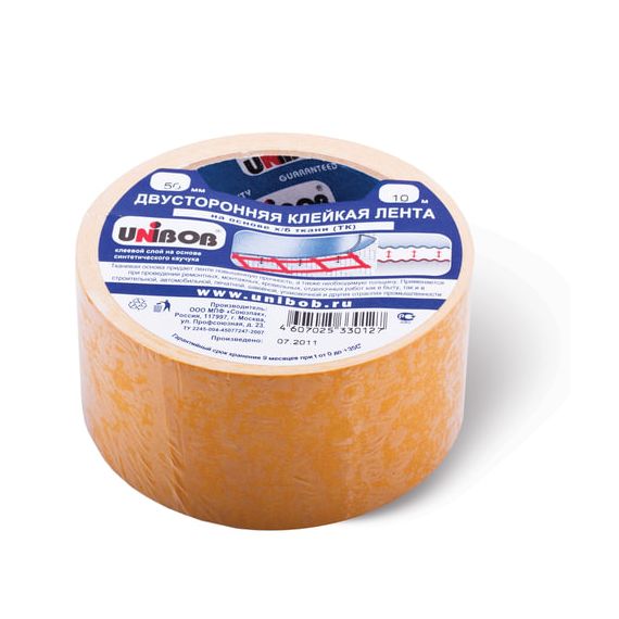 Клейкая двухсторонняя лента 50 мм х 10 м, ТКАНЕВАЯ ОСНОВА, UNIBOB