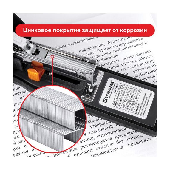 Прочные, устойчивые к смятию скобы для степлера имеют цинковое покрытие, которое защищает их от коррозии. Максимальное количество сшиваемых листов - 50 штук. Продаются в картонной упаковке по 1000 штук в каждой, что является оптимальным вариантом для долговременного использования.