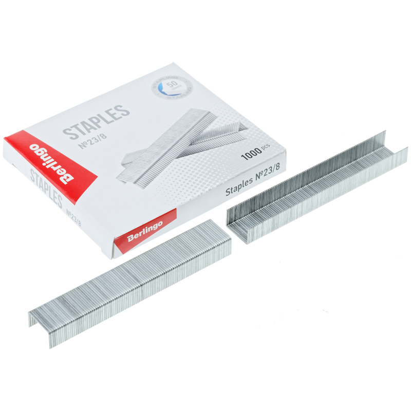 Скобы канцелярские № 23/8 Berlingo оцинкованные отлично подойдут для скрепления листов бумаги. Скобы упакованы в картонную коробочку по 1000 штук. Канцелярские скобы изготовлены из стальной проволоки, а усиленный металл с покрытием из цинка предотвращает появление коррозии. Меньший диаметр проволоки со специальной заточкой обеспечивает надежное сшивание до 50 листов. Благодаря специальному клею скобы не крошатся и не рассыпаются при падении.