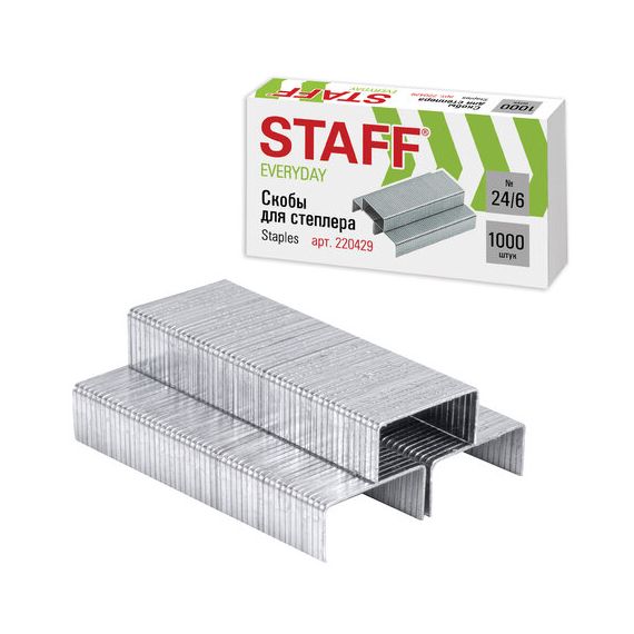 Стальные скобы серебристого цвета для степлера STAFF "EVERYDAY" размером № 24/6.