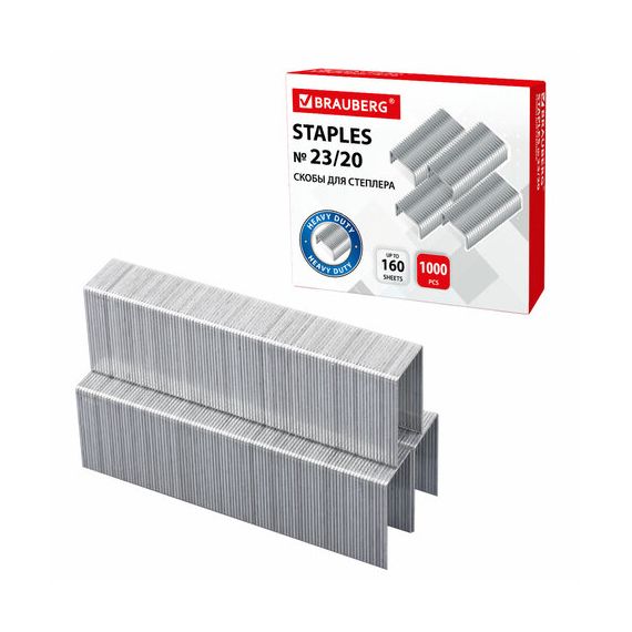 Скобы для степлера №23/20, 1000 штук, СВЕРХПРОЧНЫЕ, от 90 до 160 листов, BRAUBERG