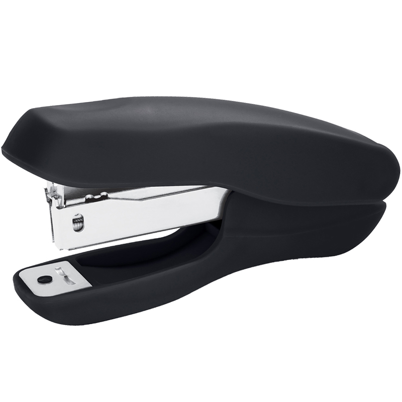 Удобный, пластиковый степлер для скоб №24, сшивает до 20 листов, вмещает 50 скоб. Пластиковый корпус, металлический механизм, цвет корпуса - черный.