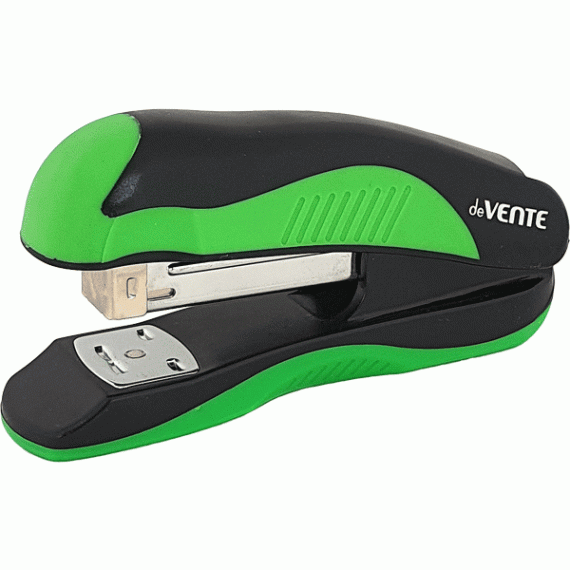 Степлер "deVENTE. MonoChrome" 24/6&26/6 (мощность 20 листов, глубина скрепления 45 мм) пластиковый с каучуковой вставкой, в картонной коробке, черный с неоновым зеленым