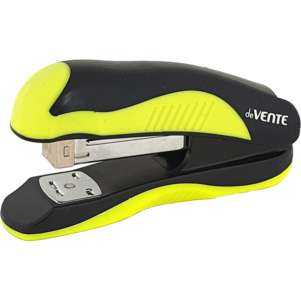 Степлер "deVENTE. MonoChrome" 24/6&26/6 (мощность 20 листов, глубина скрепления 45 мм) пластиковый с каучуковой вставкой, в картонной коробке, черный с неоновым желтым
