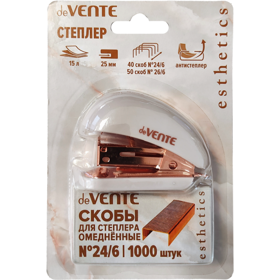 Степлер МИНИ "deVENTE. Esthetics" 24/6&26/6 (мощность 15 листов, глубина скрепления 25 мм) пластиков