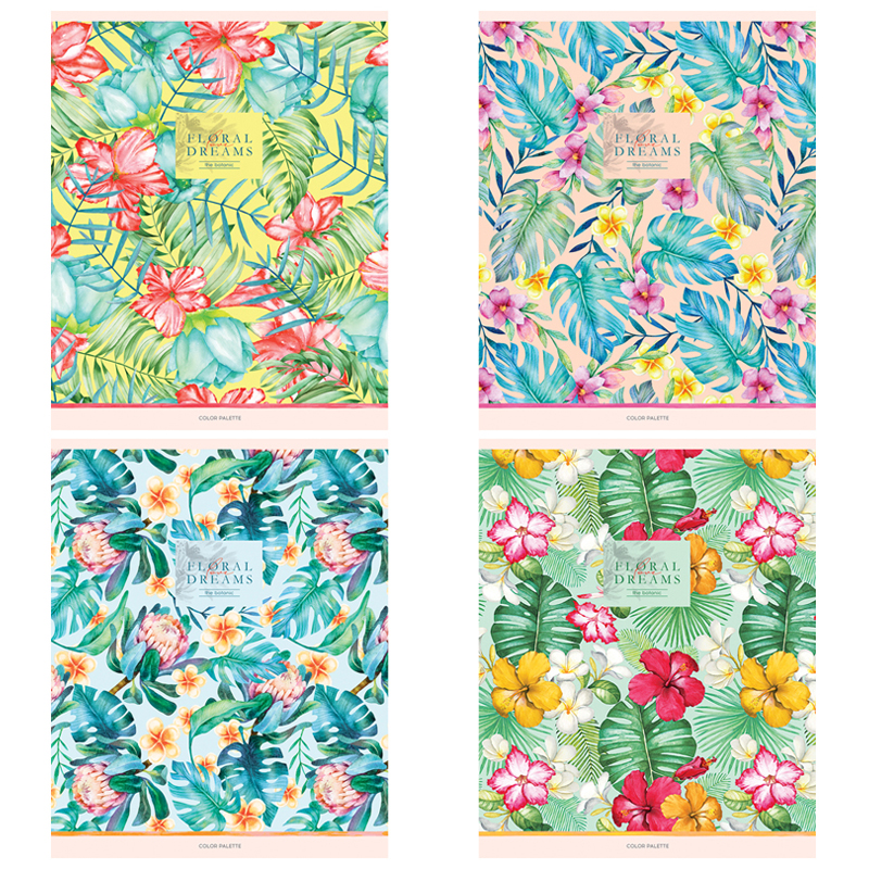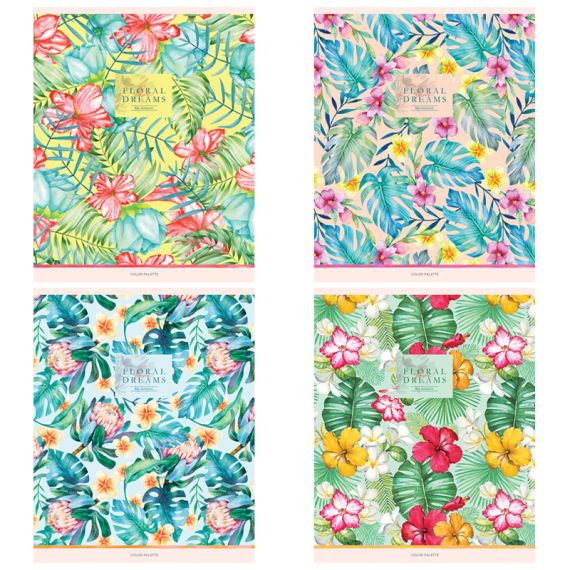 Общая тетрадь формата А5 (165*205 мм) на скрепке состоит из 80 листов. Внутренний блок – это офсетная бумага плотностью 60-65 г/м², белизна 100%, линовка – линия с полями. Оформление тетради по достоинству оценят любители растительных мотивов. Обложка тетради ArtSpace изготовлена из мелованного картона.