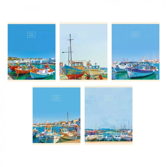 Тетради А5 80л. Скрепка. Клетка. Обл.: мел. картон. Бум. оф.60 г/м2. Поля. В уп. 5 видов. Уп./гофр. Boats, Россия