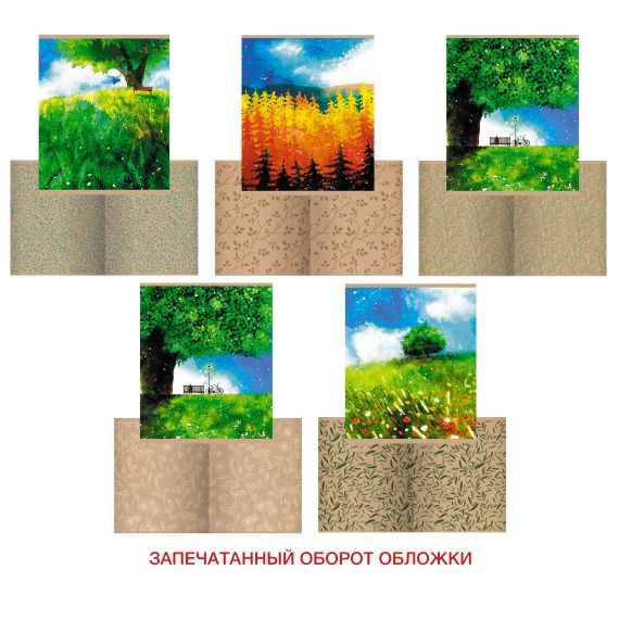Тетради А5 48л. Скрепка. Клетка. Обложка: картон немелованный, запечатанный оборот. Бумага белый офсет 60 г/м2. Поля. На природе