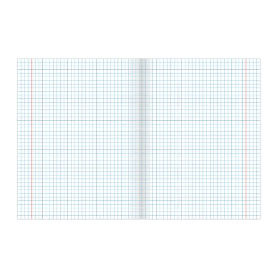 Внутренний блок плотностью 65 г/м2 из офсетной бумаги имеет линовку клетку с полями. Содержит 18 листов. Обложка изготовлена из импортного мелованного картона. Скрепка надежно скрепляет листы между собой.