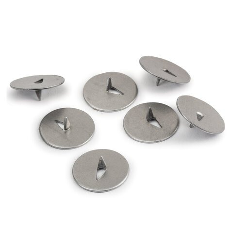 Cтальные кнопки классической формы диаметром 10 мм и острием длиной 3 мм. 100 штук в картонной коробке.