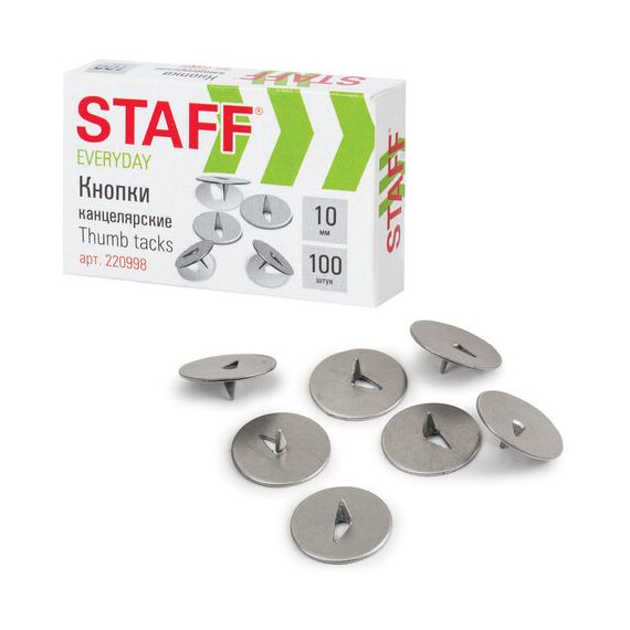 Кнопки канцелярские STAFF "EVERYDAY", 10 мм х 100 шт., РОССИЯ, в картонной коробке