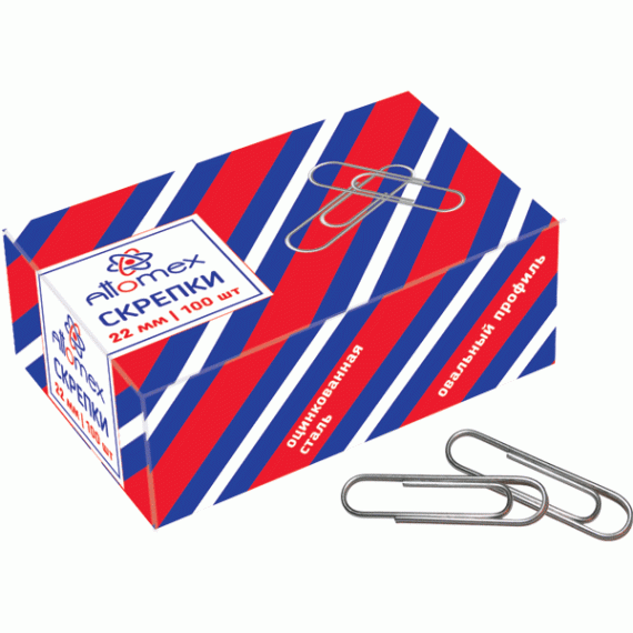 Скрепки металлические "Attomex" овальные оцинкованные 22 мм, 100 шт в картонной коробке