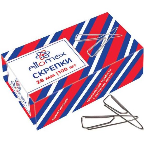 Скрепки металлические "Attomex" треугольный профиль с загнутым краем, оцинкованные 28 мм, 100 шт в картонной коробке