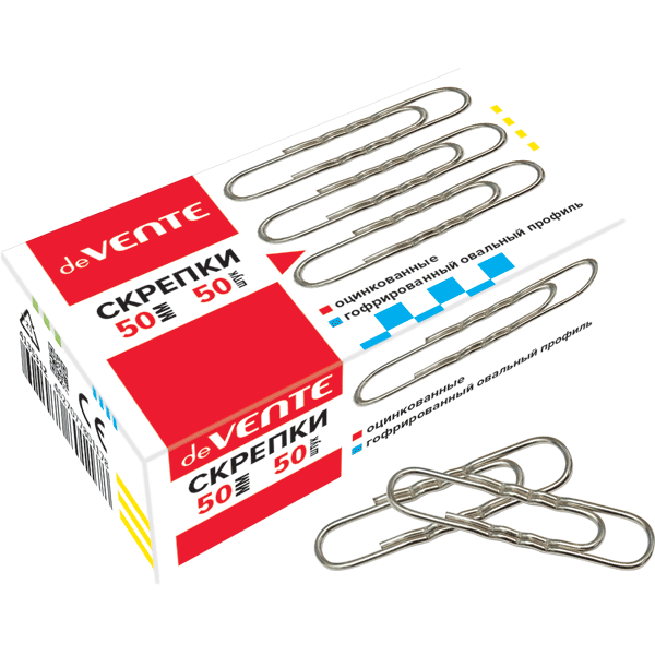 Скрепки металлические "deVENTE" гофрированные оцинкованные 50 мм, 50 шт в картонной коробке