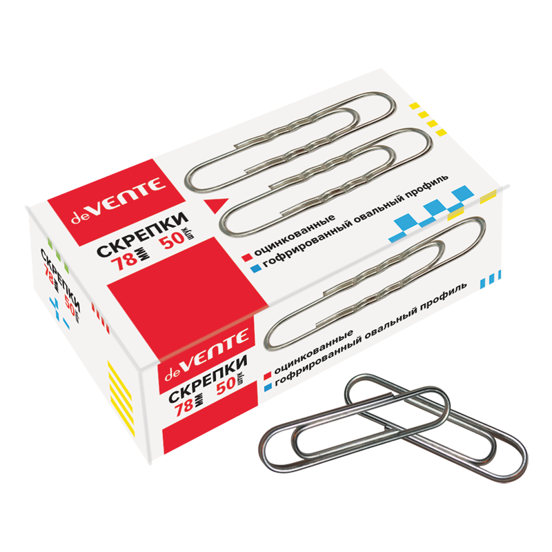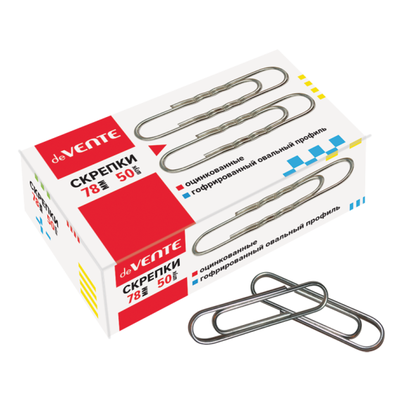 Скрепки металлические "deVENTE" гофрированные оцинкованные 78 мм, 50 шт в картонной коробке