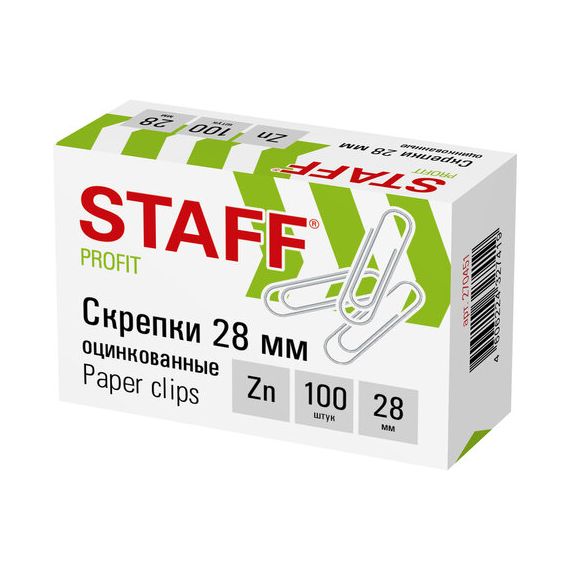 Скрепки изготовлены из стали, имеют классическую овальную форму и цинковое покрытие. Длина скрепки составляет 28 мм. Не окисляются и не повреждают документы. 100 штук в картонной коробке.